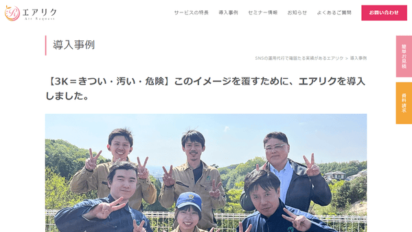 エアリク導入後、SNS上で社員の「顔」を見せる投稿や作業風景の紹介を行ったことで、フォロワー数が増加。今年度の新卒採用では、「InstagramやTikTokを見ました」という声が多数寄せられました。応募者からは「社員の雰囲気が良さそう」「現場のリアルが伝わった」といった好評を得ており、2名の採用に成功。SNSを通じて企業の魅力を伝えることが、若手求職者の安心感と信頼に繋がる結果となりました。今後は、仕事内容や働く楽しさをより効果的に発信し、さらなる採用成功を目指しています。