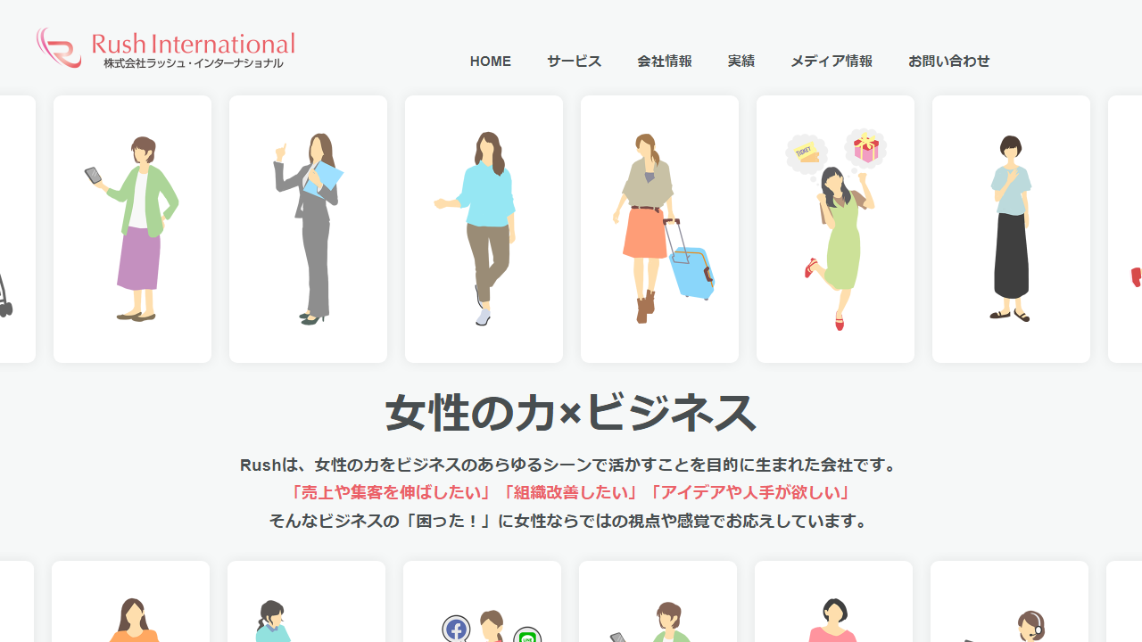 株式会社ラッシュ・インターナショナルは、「女性の力をビジネスに活かす」をコンセプトに設立された会社です。全社員が女性で構成されており、女性ならではの視点や感覚を最大限に活かし、売上向上や集客、組織改善といった多様なビジネス課題に対して支援を行っています。